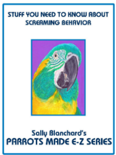 Stuff You Need to Know About Screaming Behavior in Companion Parrots 24 pages .pdf Version - $8.49 (sent by e-mail) Topics include: Easy to Prevent Harder to Solve, Parrot Vocalization is Communication, Noise Tolerance, The Human Element, Raucous Good Time Parrots, Anticipating Noise Patterns, Immediate Cause and Effect, Understanding Contact Calls, #1 Problem is Screaming for Attention, Anticipation of Need, Changing the Person First, Bad Advice Creates More Problems than it Solves, Trying "Everything", A Trade-off, Greetings and Farewells, The "Primal Psitta-Scream", Repatterning a Parrot Not to Scream, On the Street Where He Lived, Unspoiling a Cockatoo, Noisy Playtime is Important, The Technique of Noise Substitution, Changing Negative to Positive, Instructional Interaction, Self-soothing and Comfort Behaviors, Quick Disapproval - NOT Punishment, An Emotionally Secure "Bappyhood", Dependent Independence, Permanent Changes are Not Easy, Screaming Basics: Unacceptable Screaming, Screaming Basics: Acceptable Screaming |